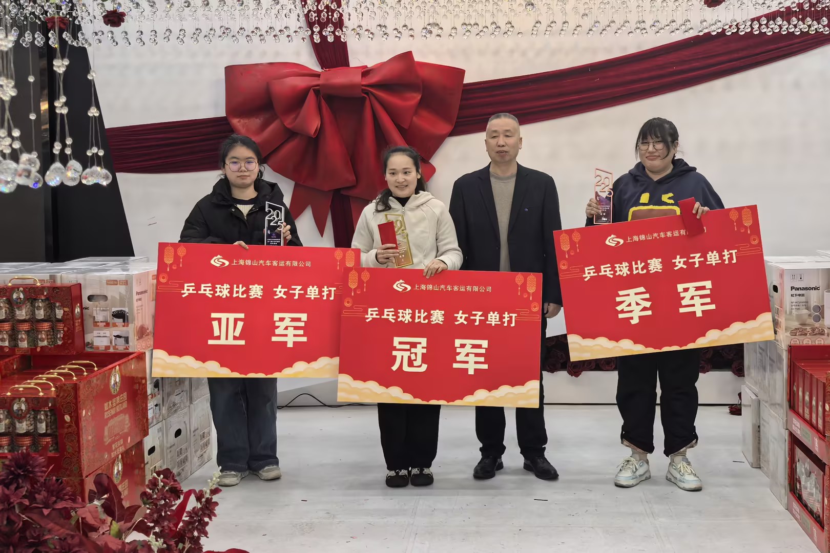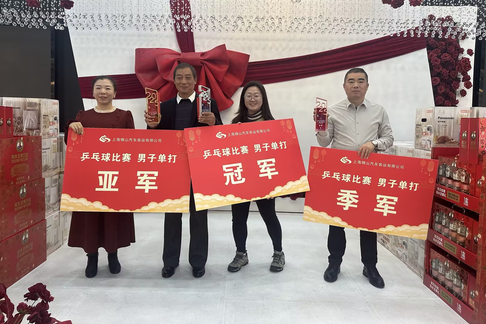 借着年夜饭的契机,我们也为首届锦山乒乓球比赛的优胜者们送上了奖杯与祝贺。在过去几天的赛程中,他们凭借精湛的技艺和顽强的意志“突出重围”,勇夺佳绩。此刻,奖杯不仅是对优异成绩的褒奖,更是对他们拼搏历程的崇高致敬。无论取得什么样的成绩,每一位参赛者都是自己人生的冠军。他们追逐梦想的身影,早已赢得我们所有人的尊重与掌声。再次祝贺所有获奖选手!也衷心感谢每一位为我们奉献精彩瞬间的运动健儿!