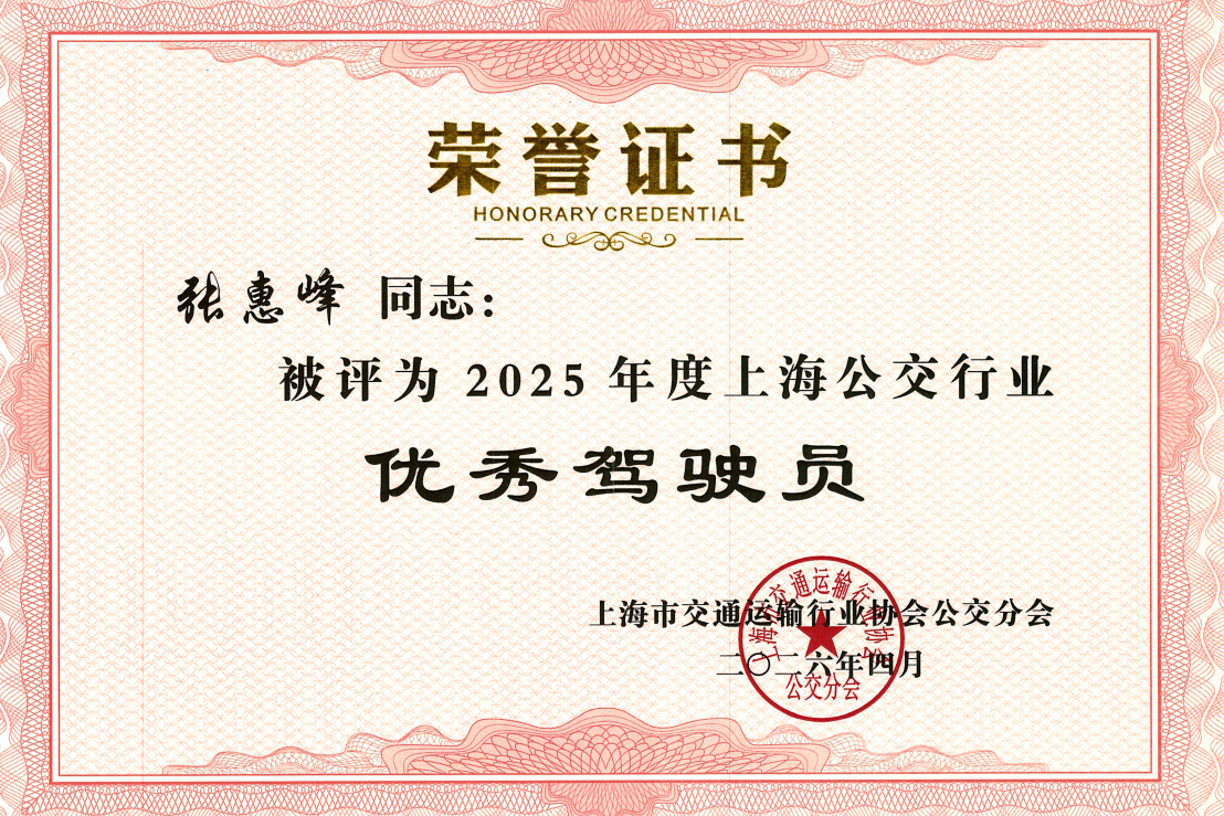 张惠峰同志深耕驾驶岗位多年,始终把安全行车放在首位,严格执行车辆检查制度,以规范操作、平稳驾驶和防御性驾驶技巧守护每一趟行程,保持优异安全记录。工作中坚持 “多微笑、多关心、多耐心、多帮助”,主动为乘客提供出行指引、介绍乘车便利,用细节传递温度,以专业素养赢得乘客信赖。