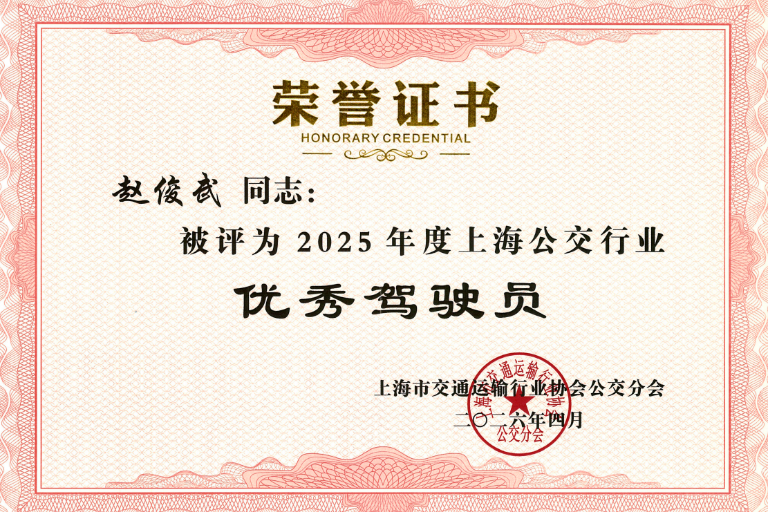 赵俊武同志自成为一名公交驾驶员以来,始终坚守 “安全第一” 准则,认真落实车辆日常检查与维护,细致排查隐患,多年保持零责任事故。服务中文明有礼、贴心周到,主动帮扶老弱病残孕等特殊乘客,保持车厢整洁舒适,多次拾金不昧;并积极投身重大活动交通保障,以准点、高效、可靠的表现展现责任与担当。