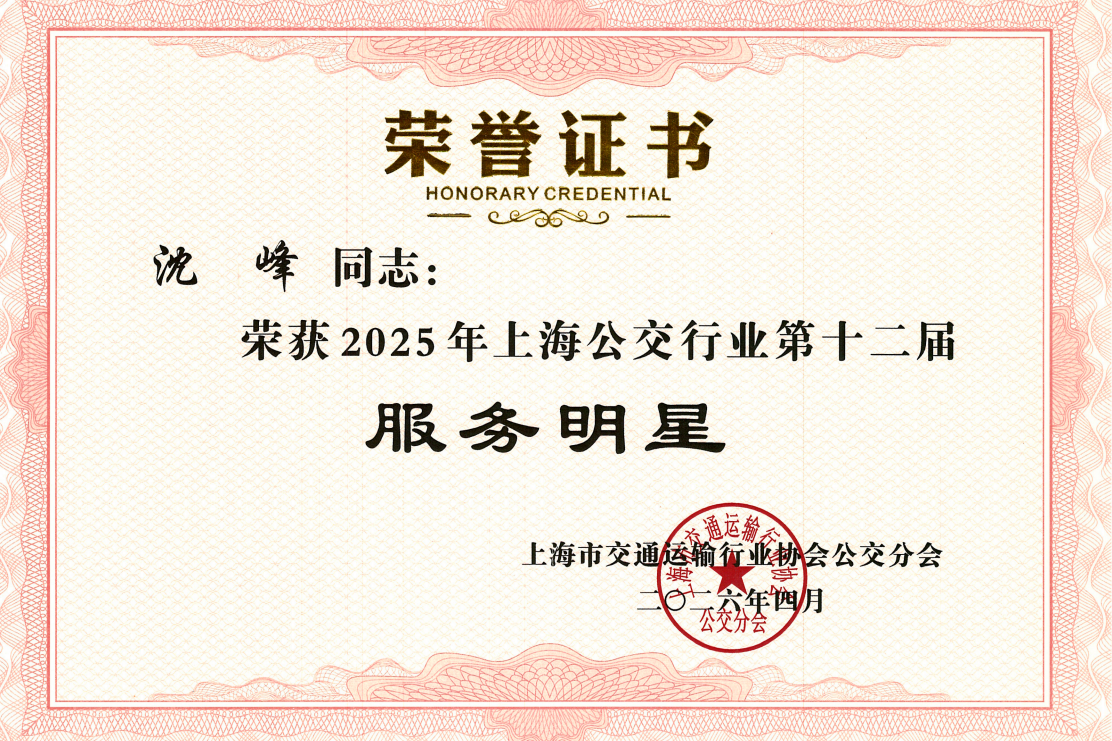 沈峰同志多年坚守运营一线,无论酷暑严寒还是风雨交加,他总是提前到岗、细致维保,以专业应对各类路况,牢牢守住安全底线。服务热情周到,主动帮助有需要的乘客,耐心引导乘车、协助安置行李,积极参与重大保障任务,用暖心、细致、负责的态度,充分展现公交服务明星的良好风貌。